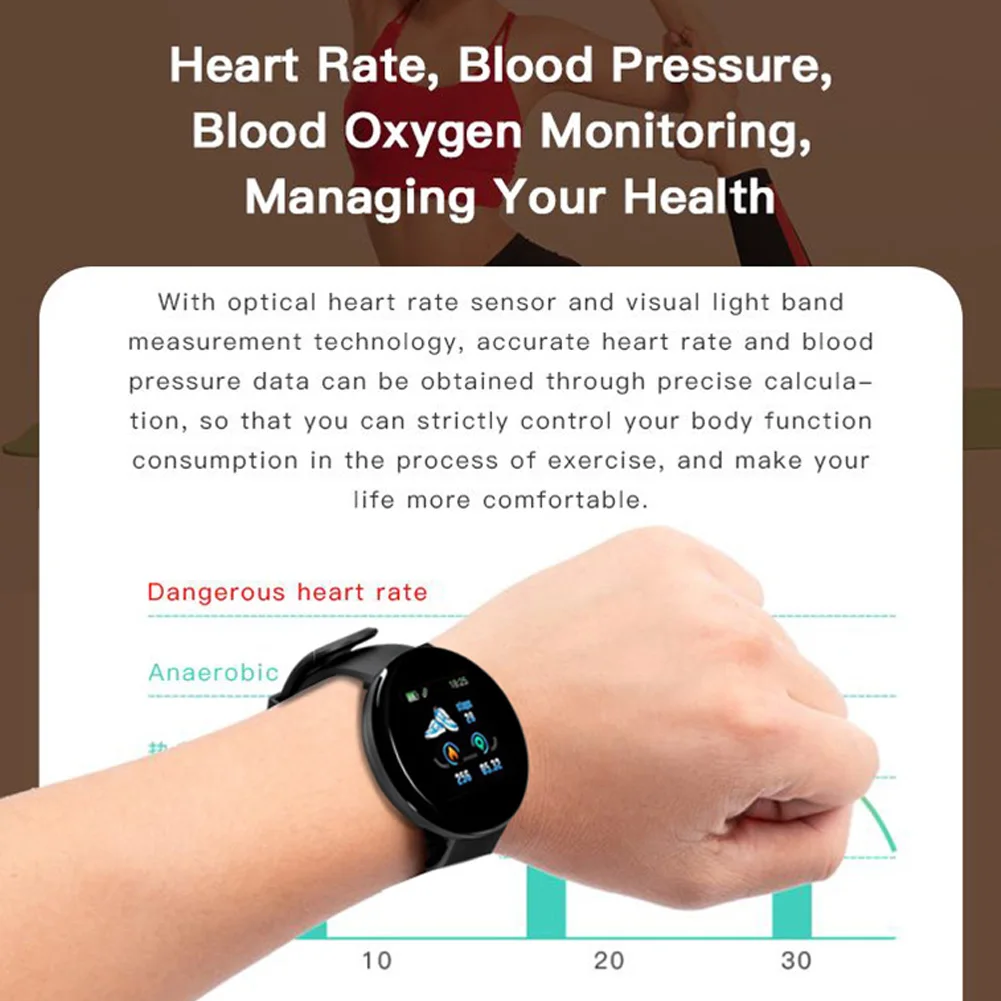 Спортивные Смарт-часы D18 для мужчин и женщин, водонепроницаемые умные часы с пульсометром, тонометром, оксиметром, для Android и IOS