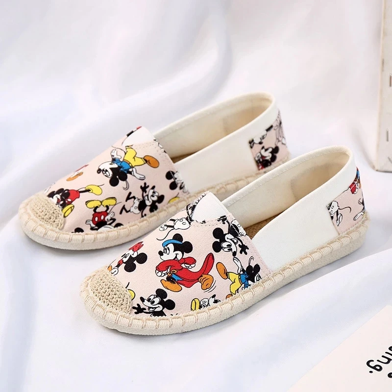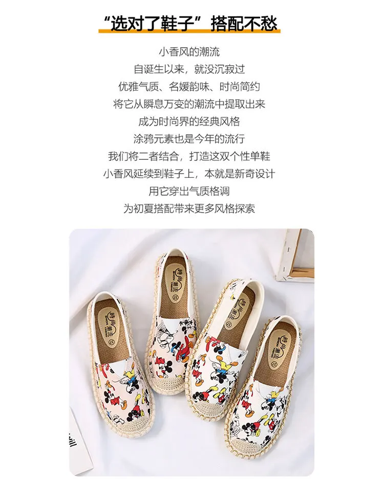 Летняя новая маленькая Тканевая обувь Disney для девочек и мальчиков ленивые тканые туфли детская обувь женская обувь с Микки Маусом