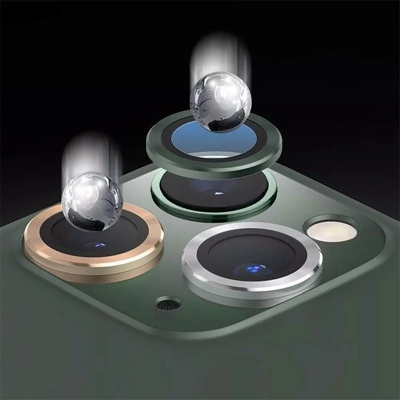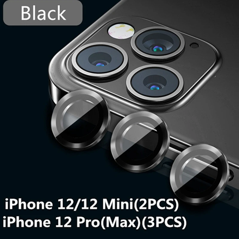 Защитное стекло 3D для камеры iPhone 12 Pro Max, металлическое кольцо, стекло для камеры, закаленное стекло + металлическое кольцо