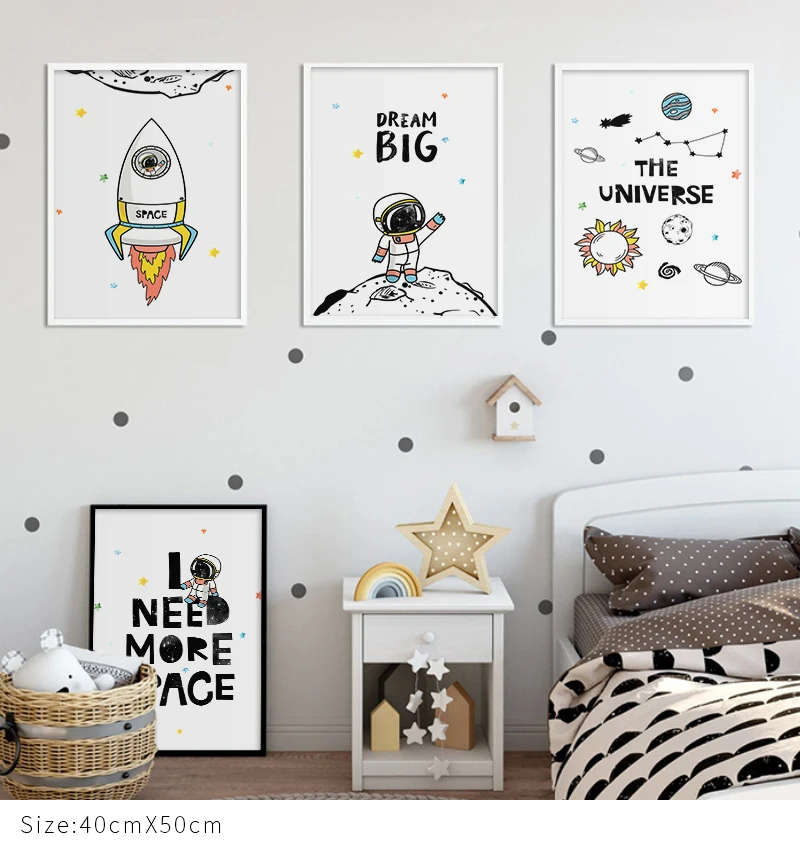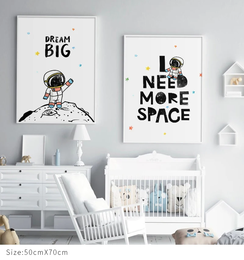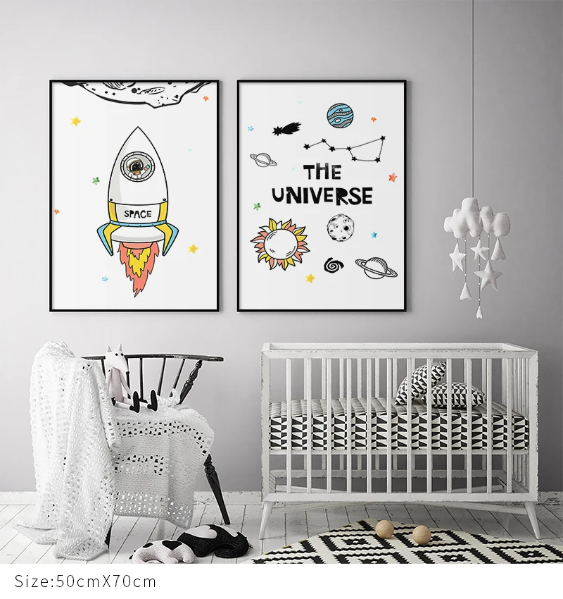 Пространства космонавты и ракеты планета неотразимые густые принт Детская Wall Art фотографии холст картины Nordic плакат для мальчиков ясельного возраста, номер Декор