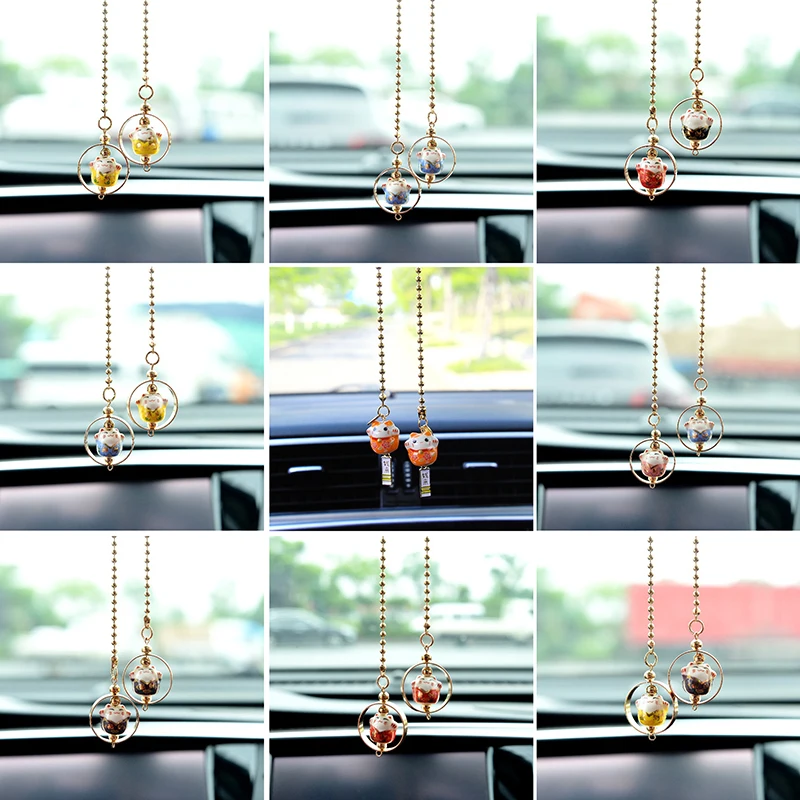 Милая подвеска в виде кошки на удачу, подвеска для автомобиля, аксессуары для украшения зеркала заднего вида, подвесная подвеска в подарок