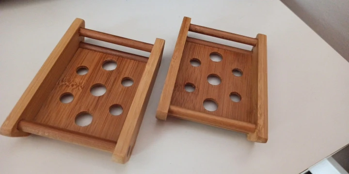 Хорошая стильная мыльница. Деревянная с пропиткой. От воды не деформируется. Оказалась меньшего размера, чем я ожидала. Но в целом довольна использованием. Закажу ещё.
