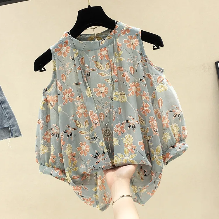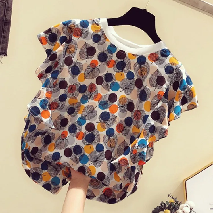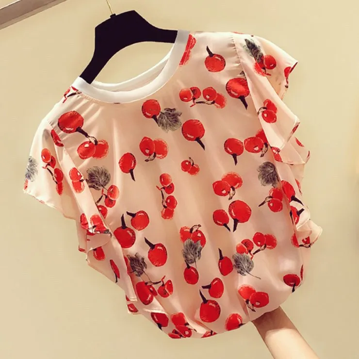 Женская шифоновая блузка с коротким рукавом и принтом кошки