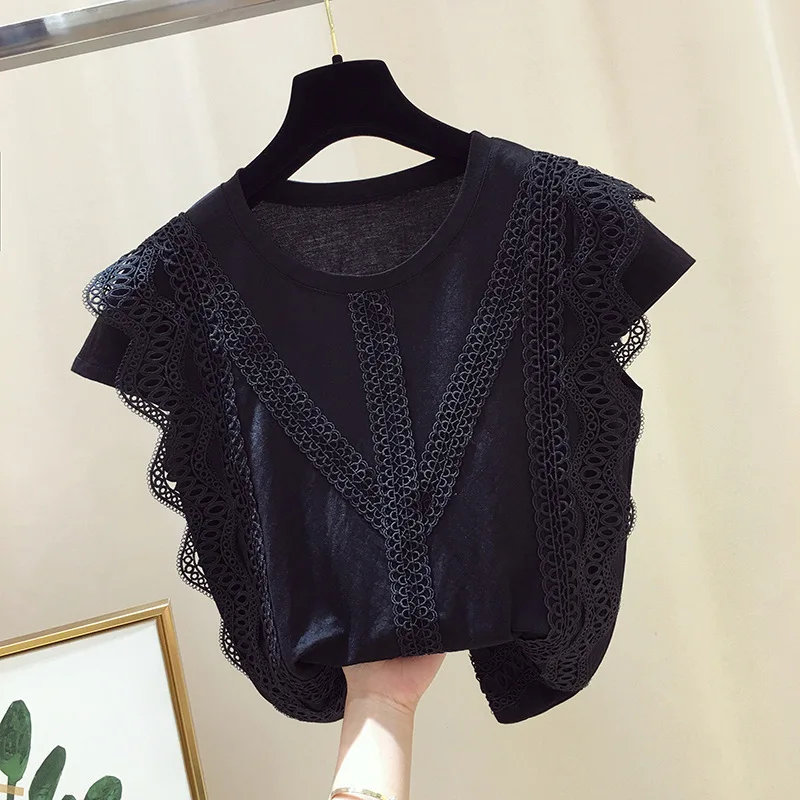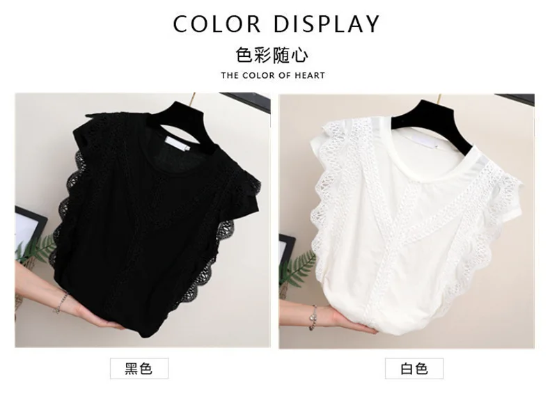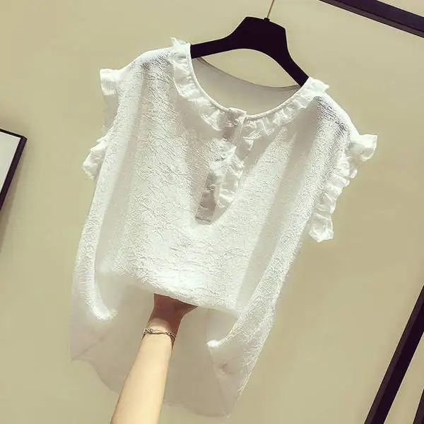 Рубашка женская шифоновая с коротким рукавом, Милая белые кружевные...