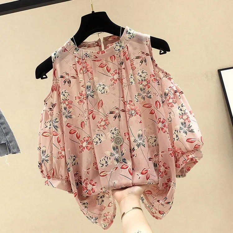 Блузка женская шифоновая с отложным воротником, с коротким рукавом