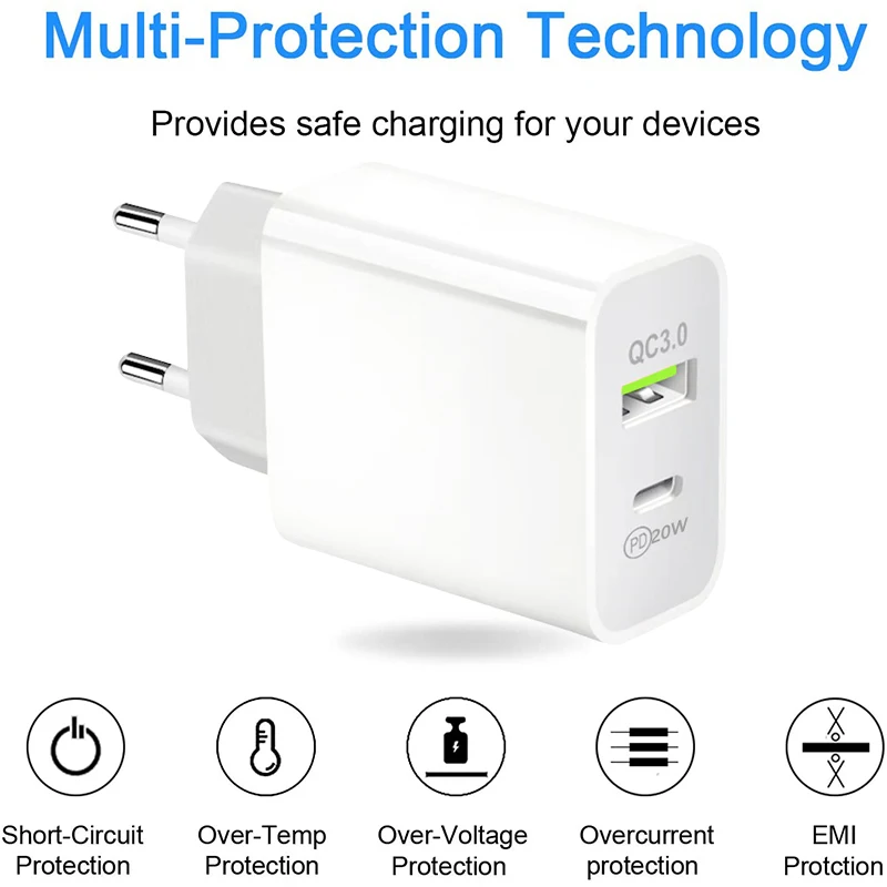 Быстрое зарядное устройство QC3.0 PD, 20 Вт, быстрое настенное заря...