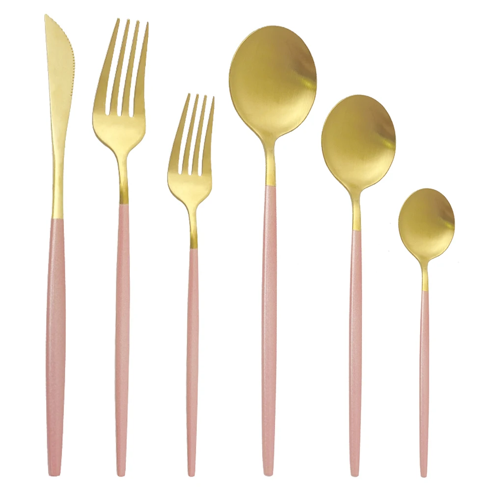 6 шт. розовый золотой набор посуды Нержавеющаясталь набор столовых ножей вилки Чай ложки Обеденный Сервиз из твердого Кухня посуда набор серебряных изделий