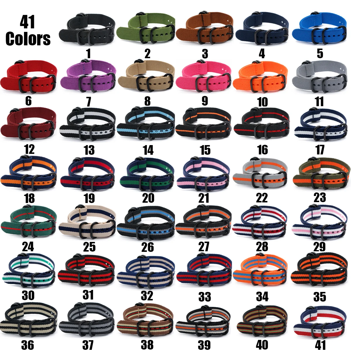 Оптом баллистический нейлоновый ремешок 18 мм 20 мм 22 мм 24 мм с черной сверхпрочной пряжкой для часов в стиле НАТО зулу 41 цвет на выбор