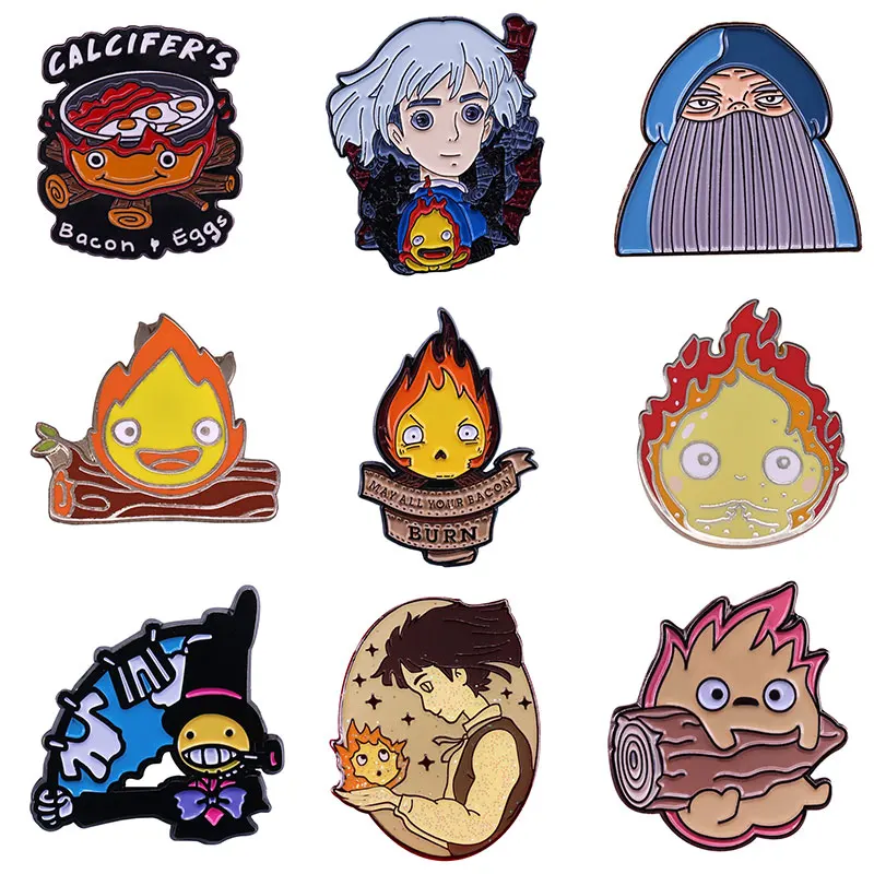 Howl's движущийся замок жесткие эмалевые булавки забавное аниме металлический рюкзак воротник отворот значки Модная бижутерия подарок
