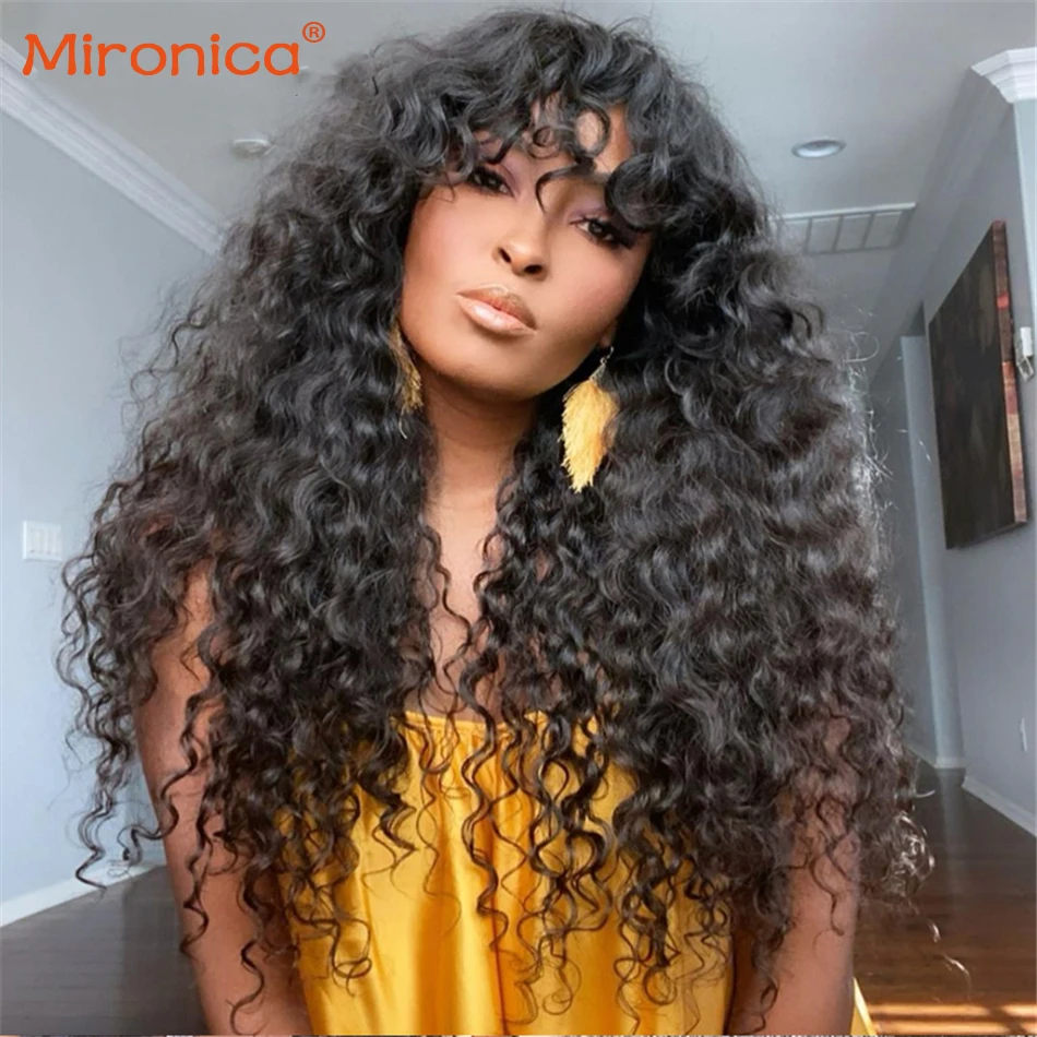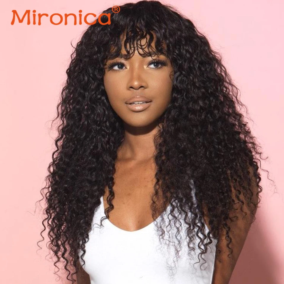 Волосы MIRONICA, перуанские волнистые парики с челкой, парик полностью машинной работы из человеческих волос, парик с челкой для чернокожих женщин 8-26 дюймов