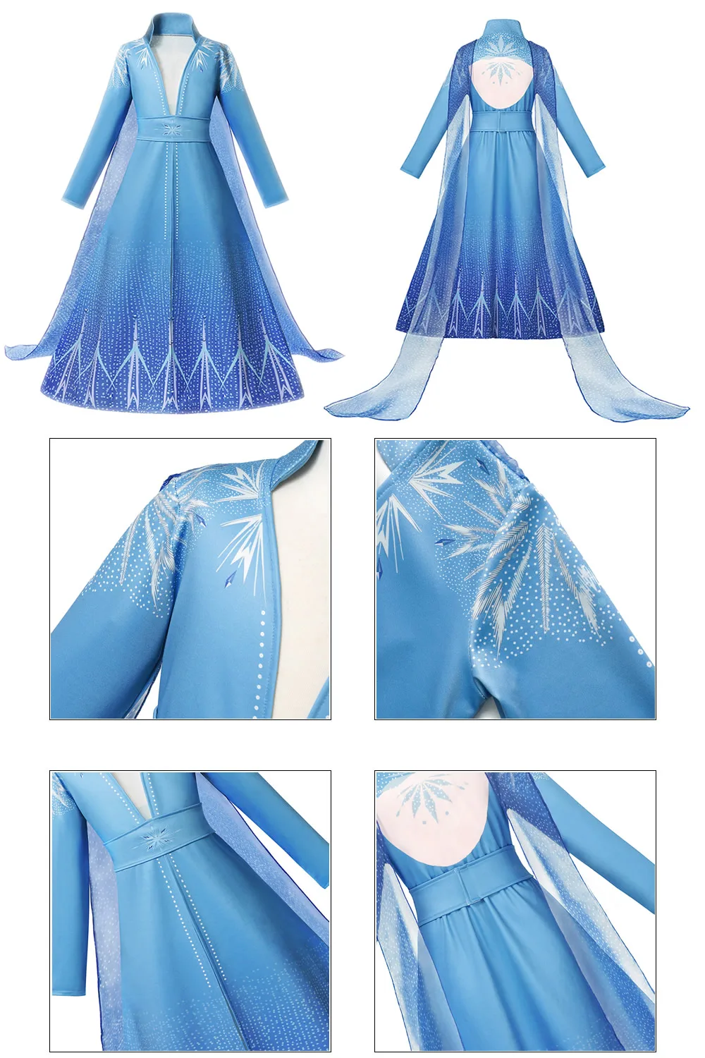 Детский Косплей-костюм Холодное сердце, летнее платье Эльзы для девочек, наряды на Рождество, день рождения, вечевечерние, Хэллоуин, 2021