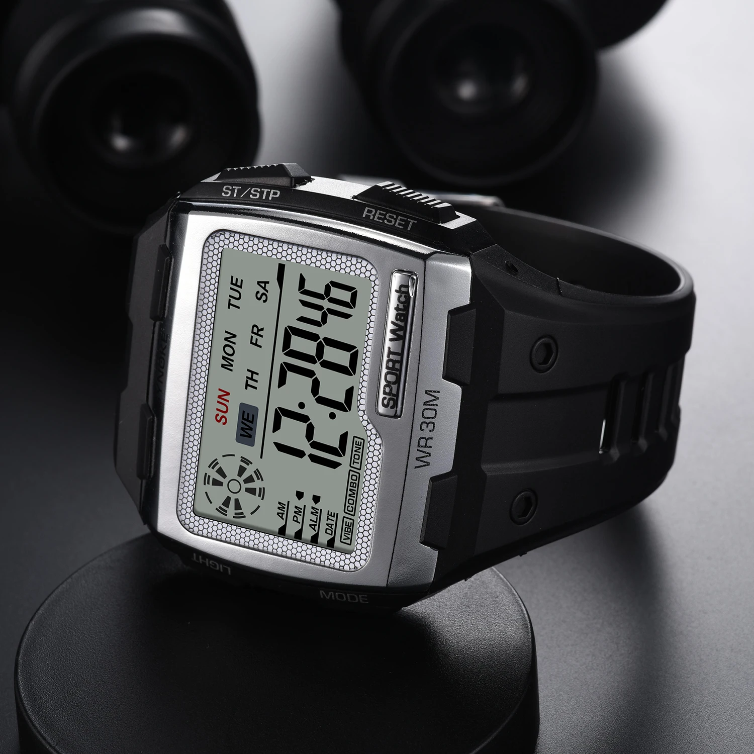 Мужские Цифровые часы SYNOKE с большим квадратным циферблатом и буд...