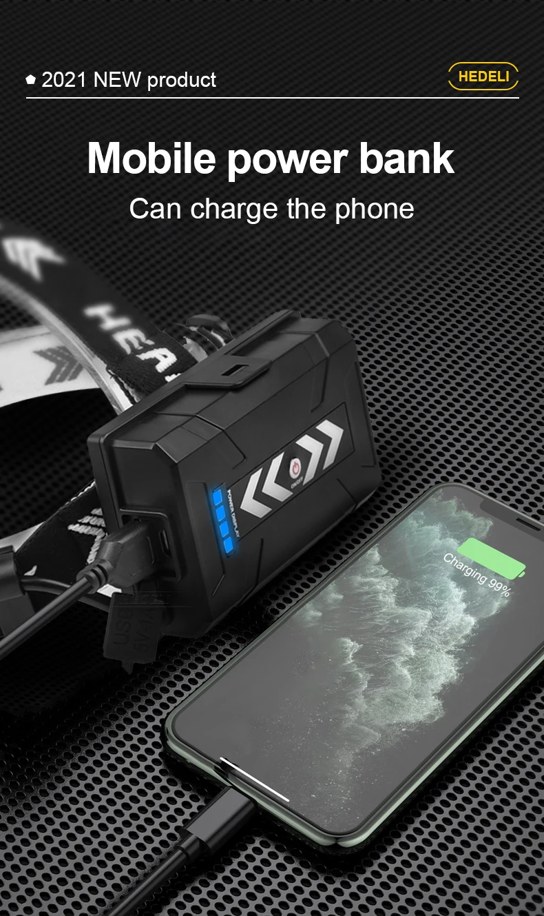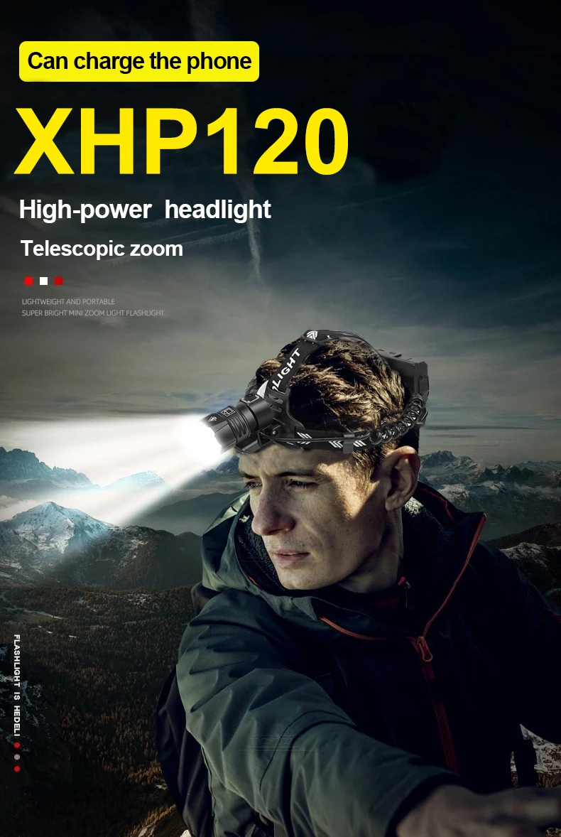 Налобный фонарь XHP120, 450000 люмен, светодиодный, перезаряжаемый, 18650