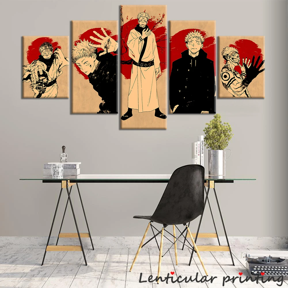 5 шт., аниме-Декор, худзюцу, Kaisen, постеры, манга, персонаж, Yuji, холст, настенные картины, винтажный декор комнаты