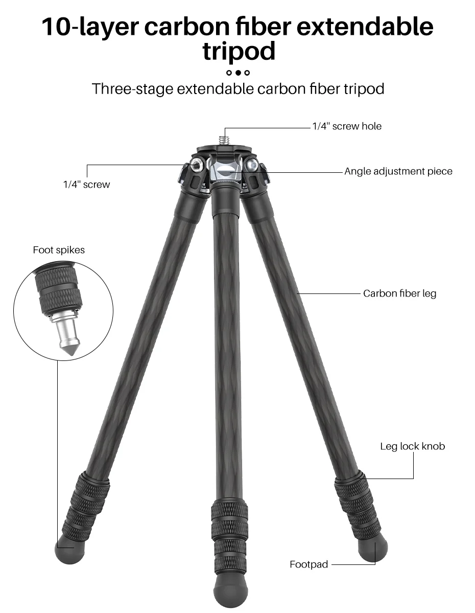 Ulanzi MT-21 Профессиональный штатив-тренога из углеволокна 1,3 м п...