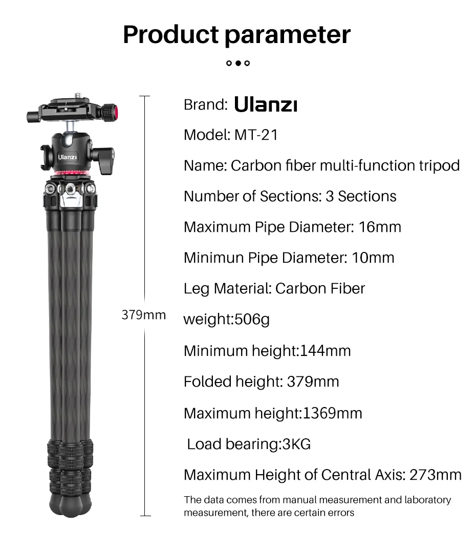 Портативный профессиональный штатив Ulanzi MT-21 из углеродного вол...