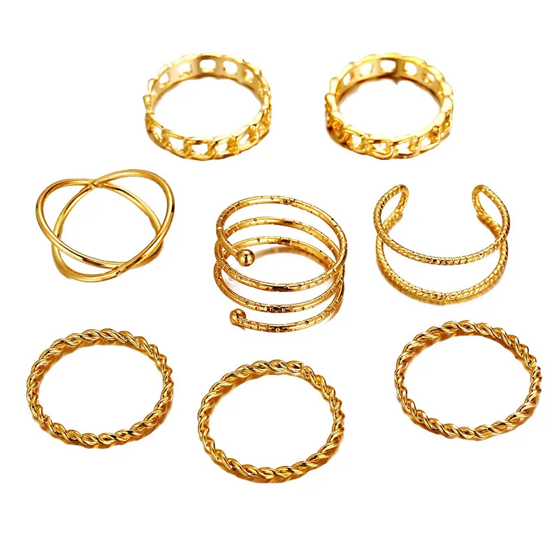 Винтажный набор колец в стиле хип-поп золотого и серебряного цвета ...