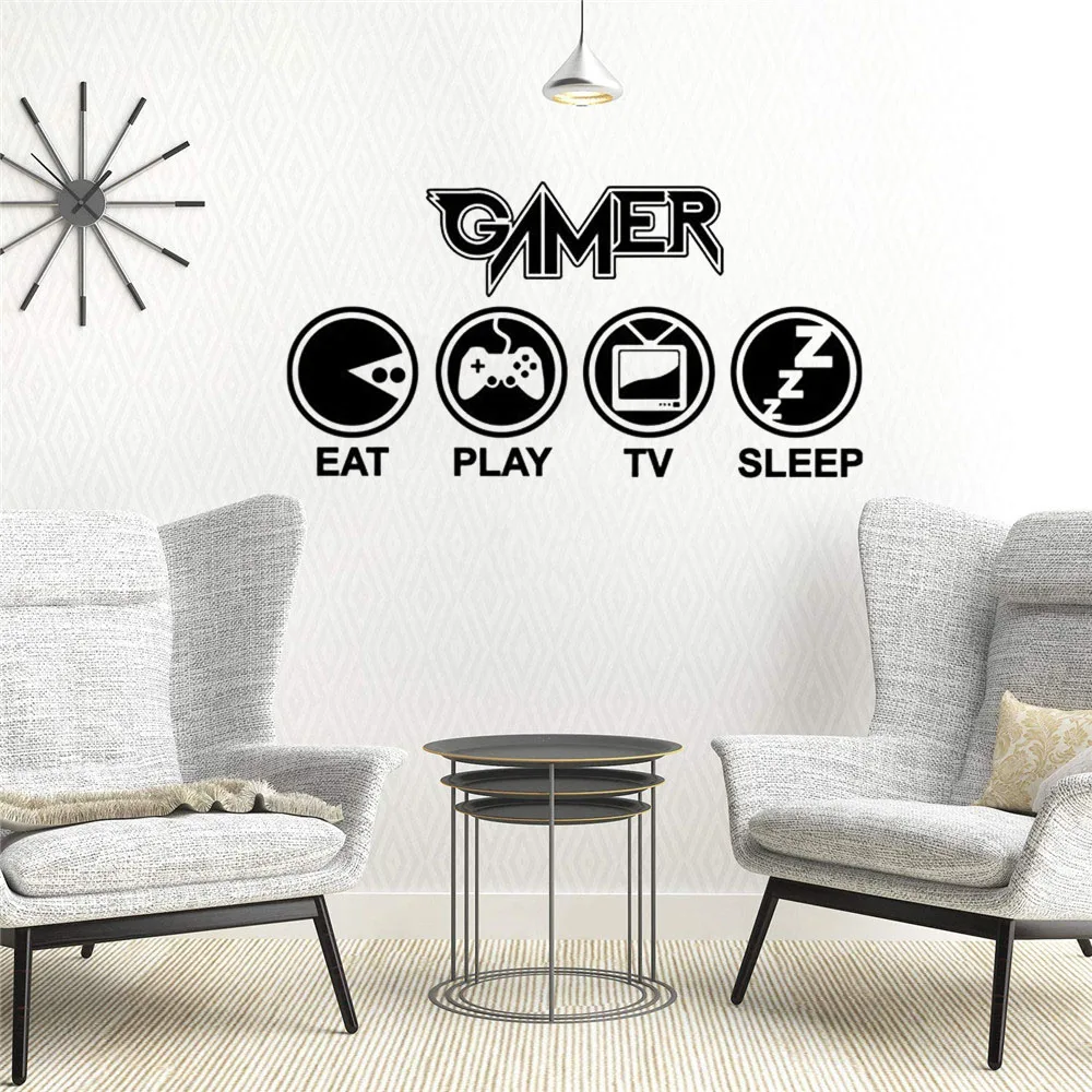Виниловая настенная наклейка Eat Sleep для повторных видеоигр, джой...