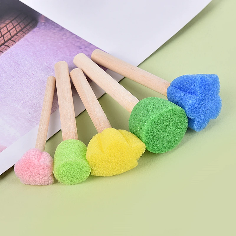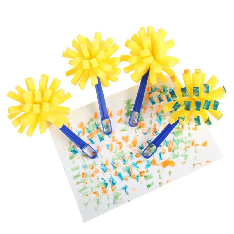 4 шт.компл. DIY деревянный Губка Желтый краски кисти деревянная ручка печать спонжевой насадки детских рисунков инструмент