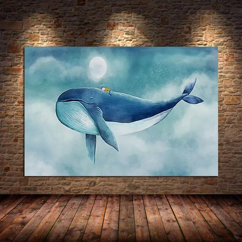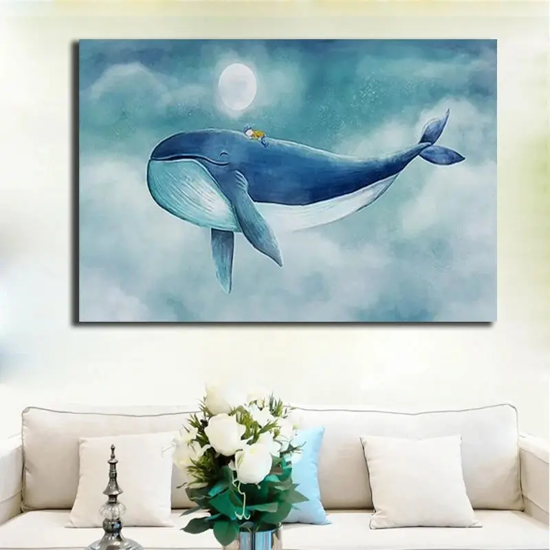 Картина на холсте с изображением синего Кита, постеры и принты с изображениями животных, домашний декор, настенные картины для детской комнаты без рамы