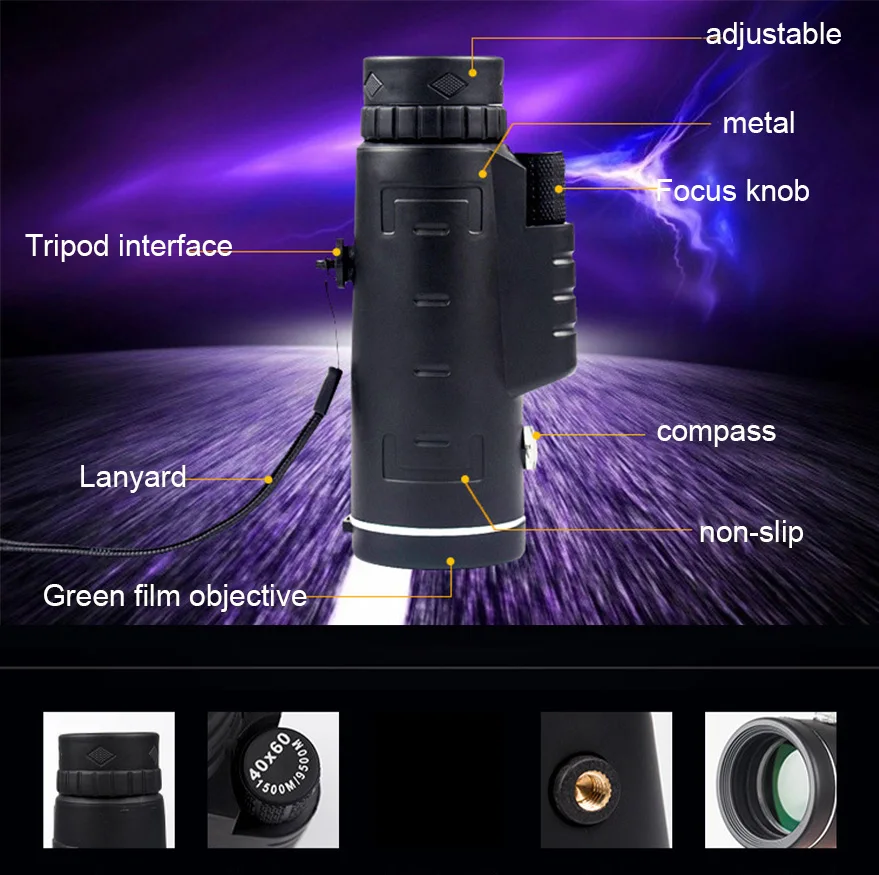 Монокулярный телескоп 40x60, водонепроницаемый, с функцией ночного ...