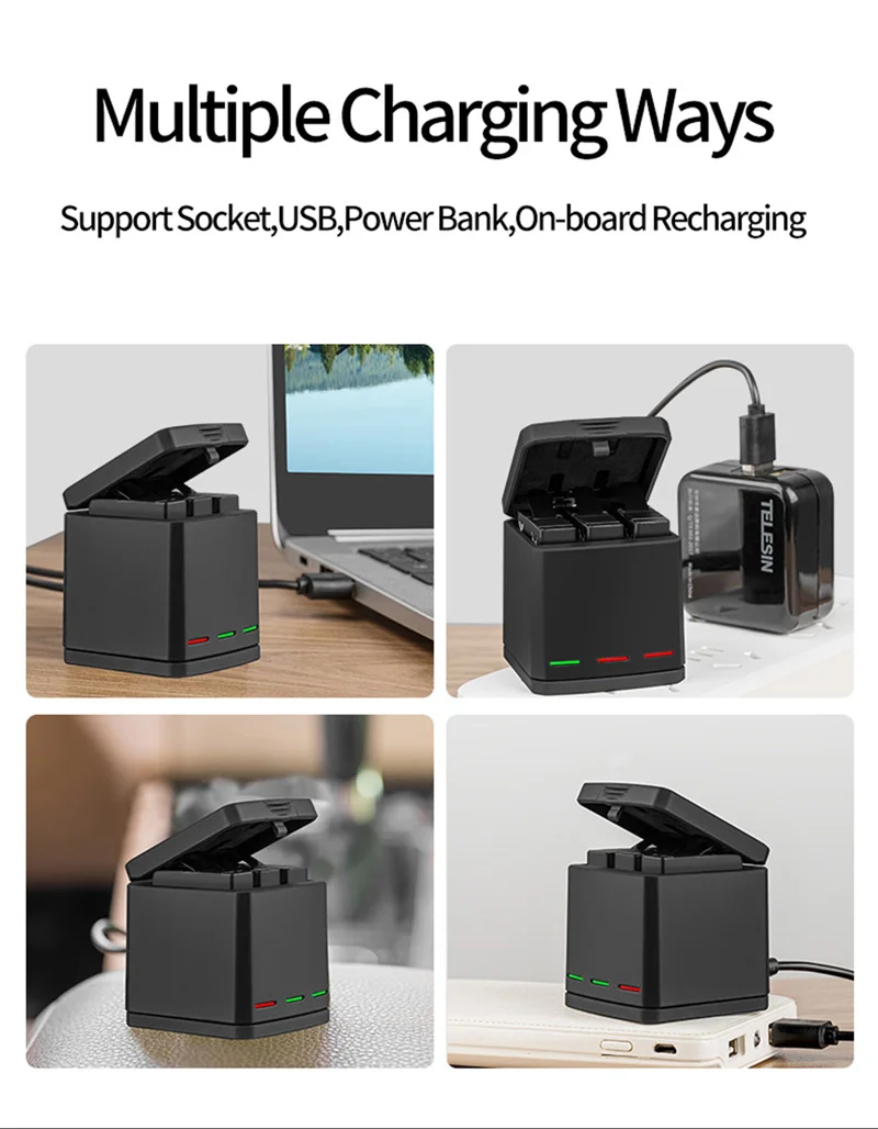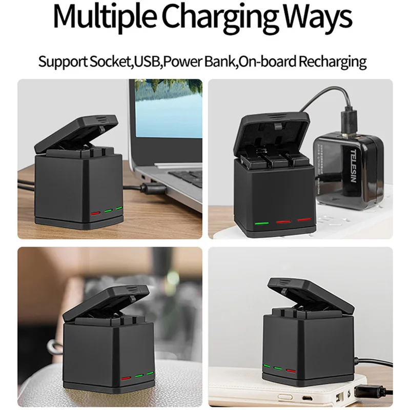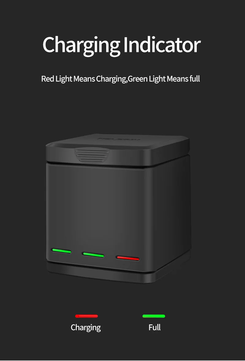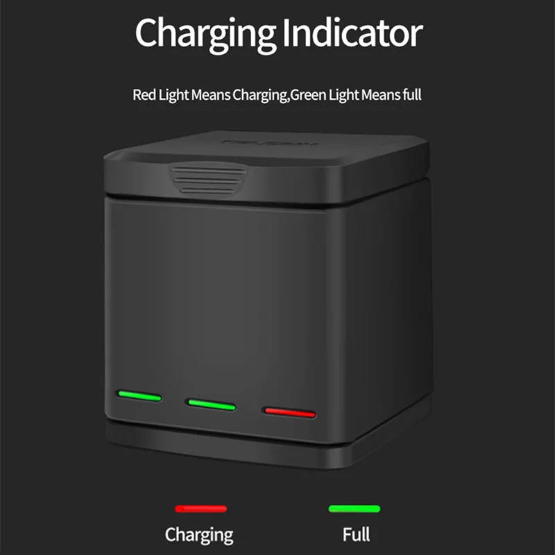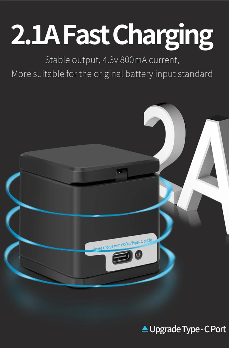 Умное зарядное устройство для GoPro Hero 8 7 6 5, зарядный футляр для литий-ионного аккумулятора, кабель Type-C, светодиодная трехсторонняя коробка для хранения, аксессуары для спортивной камеры