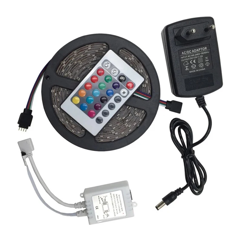 Светодиодные ленты светильник RGB 5050 SMD 2835 гибкая лента fita светодиодный светильник RGB 5 м ленты LED диод DC 12V + пульт дистанционного управления Управление + адаптер