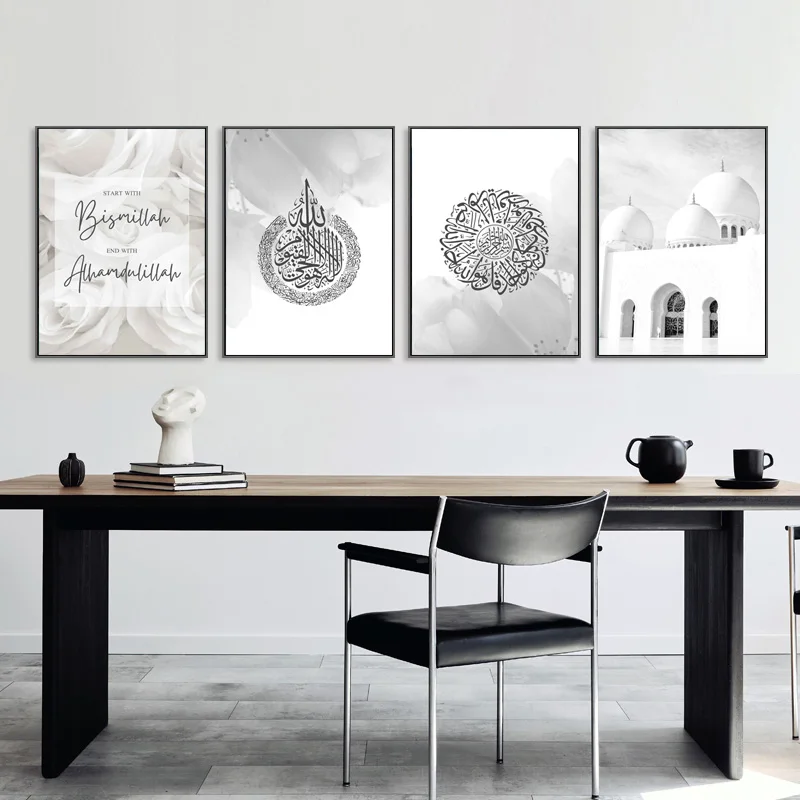 Исламская картина белый цветок картина с цитатой мечети Марокко Декор стены искусства Печать холст Современная плакат для дома Декор для дома