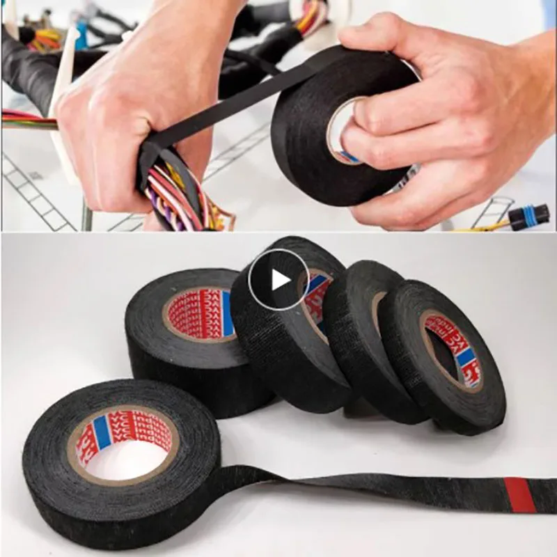 Соединительная Проводная лента, характеристики продукта Звукопоглощающая ПЭТ Нетканая лента, натуральный резиновый клейкий материал. ПЭТ Нетканая лента является гибкой и износостойкой, устойчивой к старению, ручному разрыву Цвет: Черный Длина 15 м, в основном используется в кабельных комплектах для транспортных средств внутренней обмотки жгутов