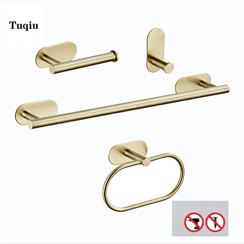Tuqiu набор оборудования для ванной комнаты матовый золотой держатель для полотенец держатель для туалетной бумаги без гвоздей крючок для халата SUS 304 аксессуары для ванной комнаты