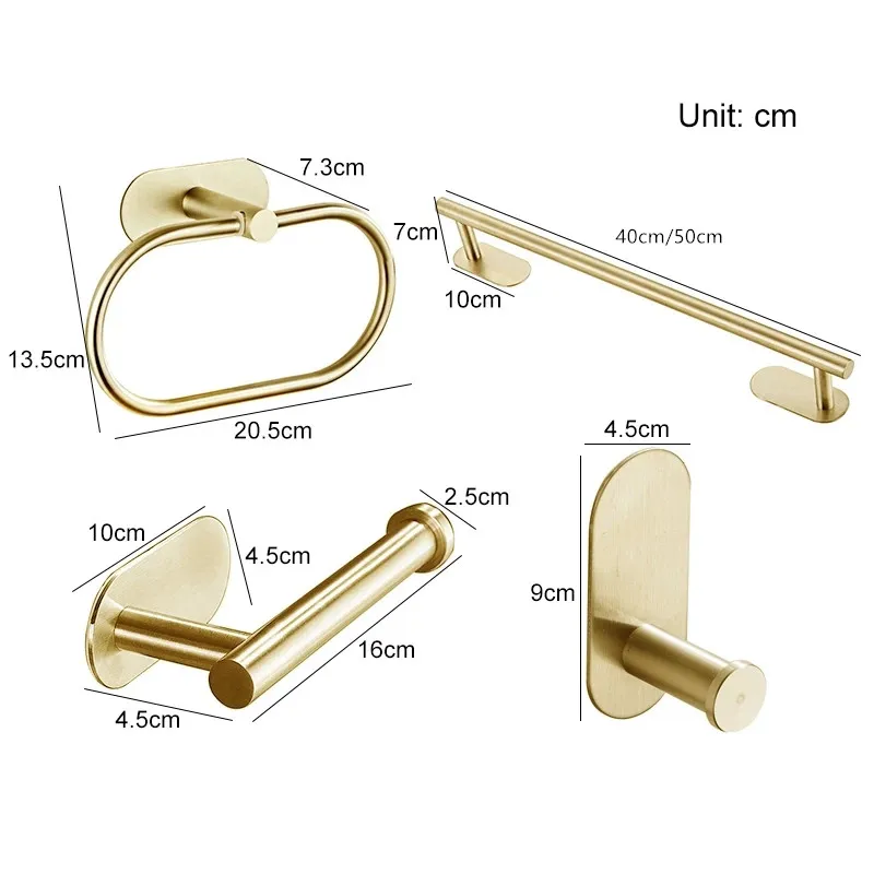 Набор аксессуаров для ванной комнаты Tuqiu, золотистый держатель для полотенец, держатель для туалетной бумаги без гвоздей, крючок для халата, аксессуары для ванной комнаты SUS 304