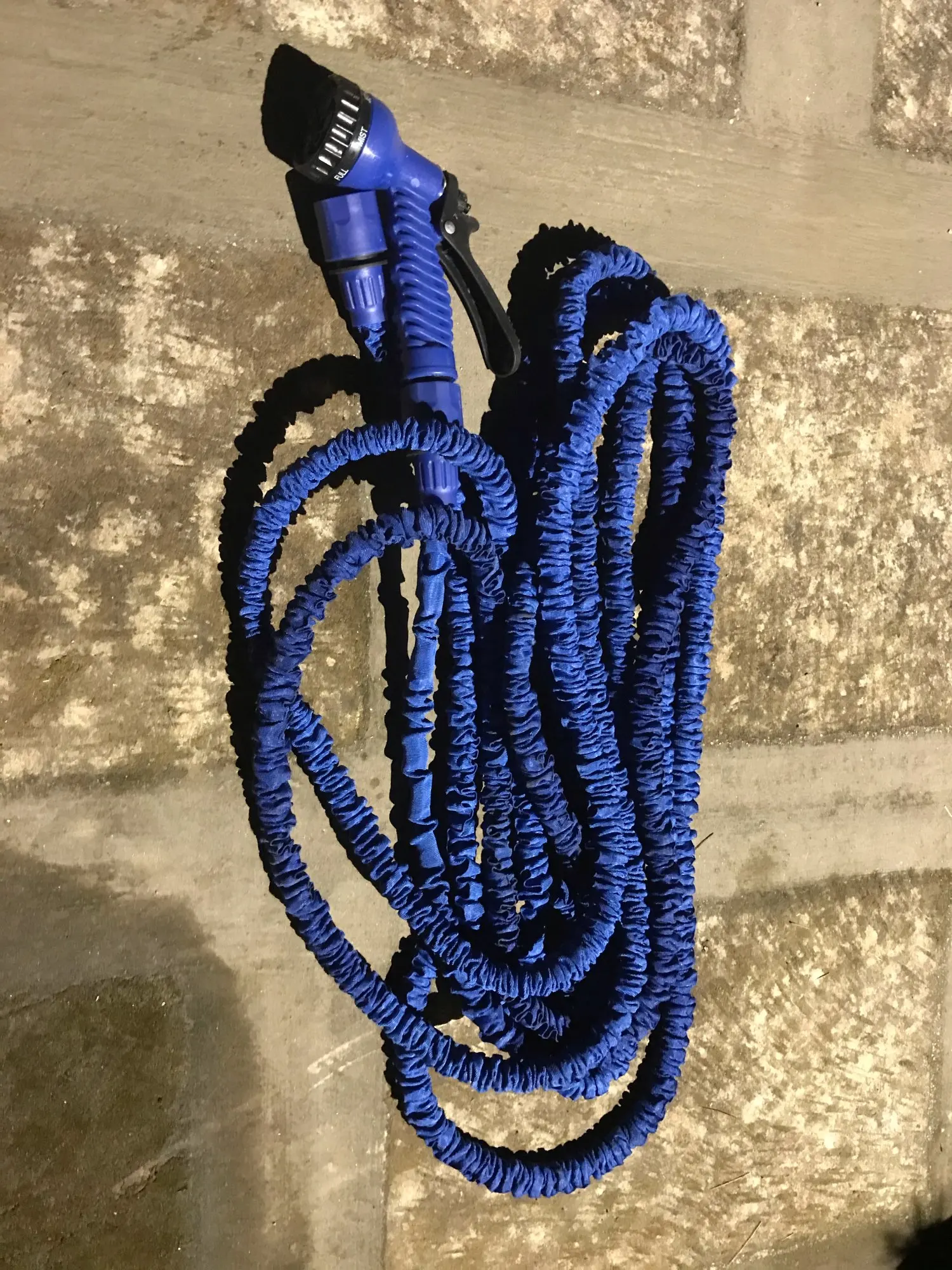 Шланг работает очень хорошо. Он очень тянется и кажется, что он хорошего качества. Он легкий и прочный. Надеюсь, что он прослужит долго. Это лучше, чем стандартные шланги, которые более громоздкие и жесткие. Другие шланги часто было бы очень трудно обернуть, это занимает гораздо меньше места. Доставка была довольно быстрой, учитывая это было из Китая. Рекомендуется! Никаких проблем!