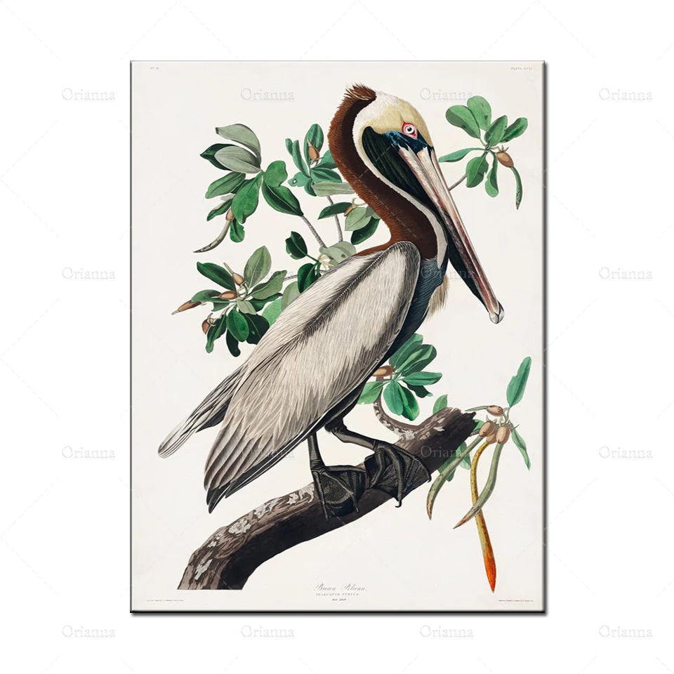 Коричневый Пеликан из птиц Америки Джон Джеймс аудубон, Художественная печать птицы, Подарочная идея-настенный художественный плакат-Современный домашний декор