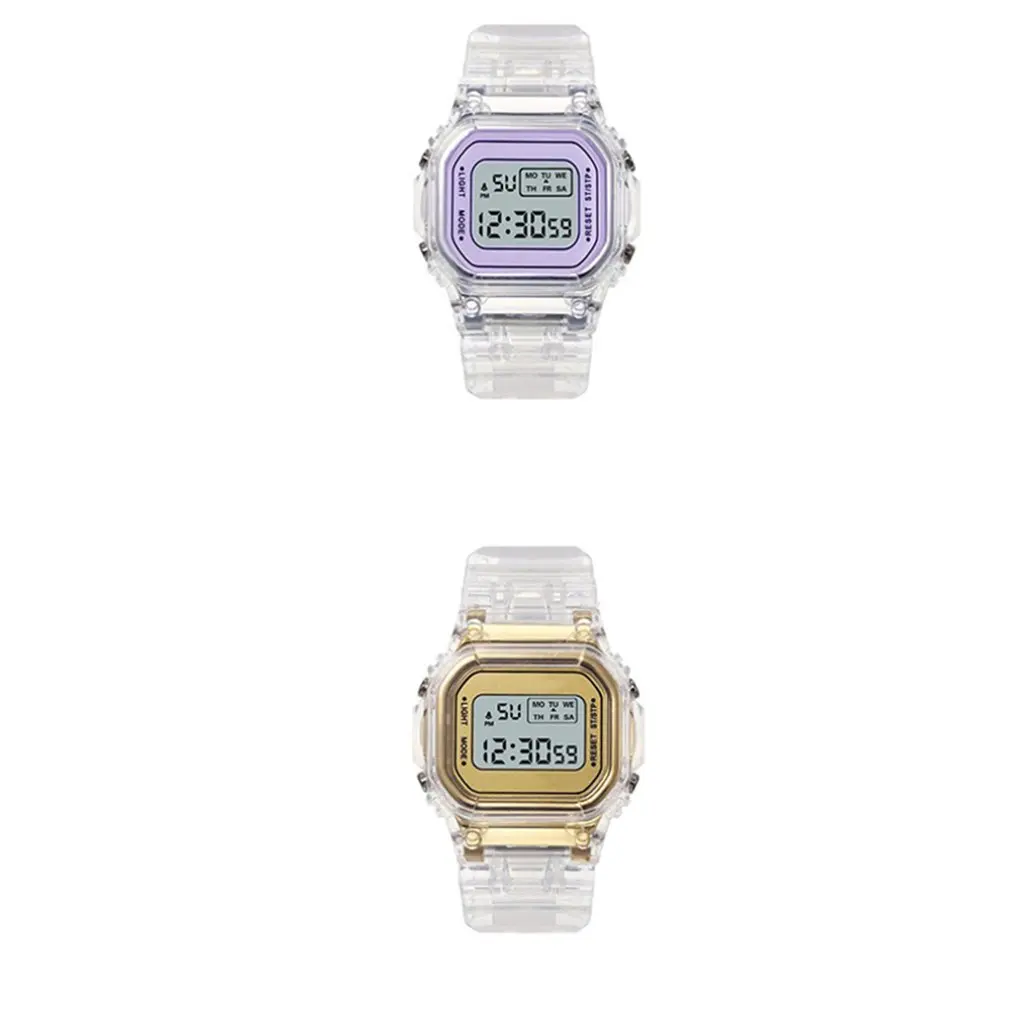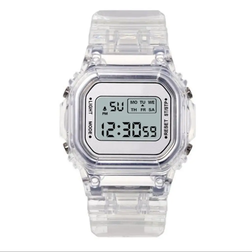 Прозрачные цифровые водонепроницаемые спортивные часы, можно носить детьми и взрослыми.