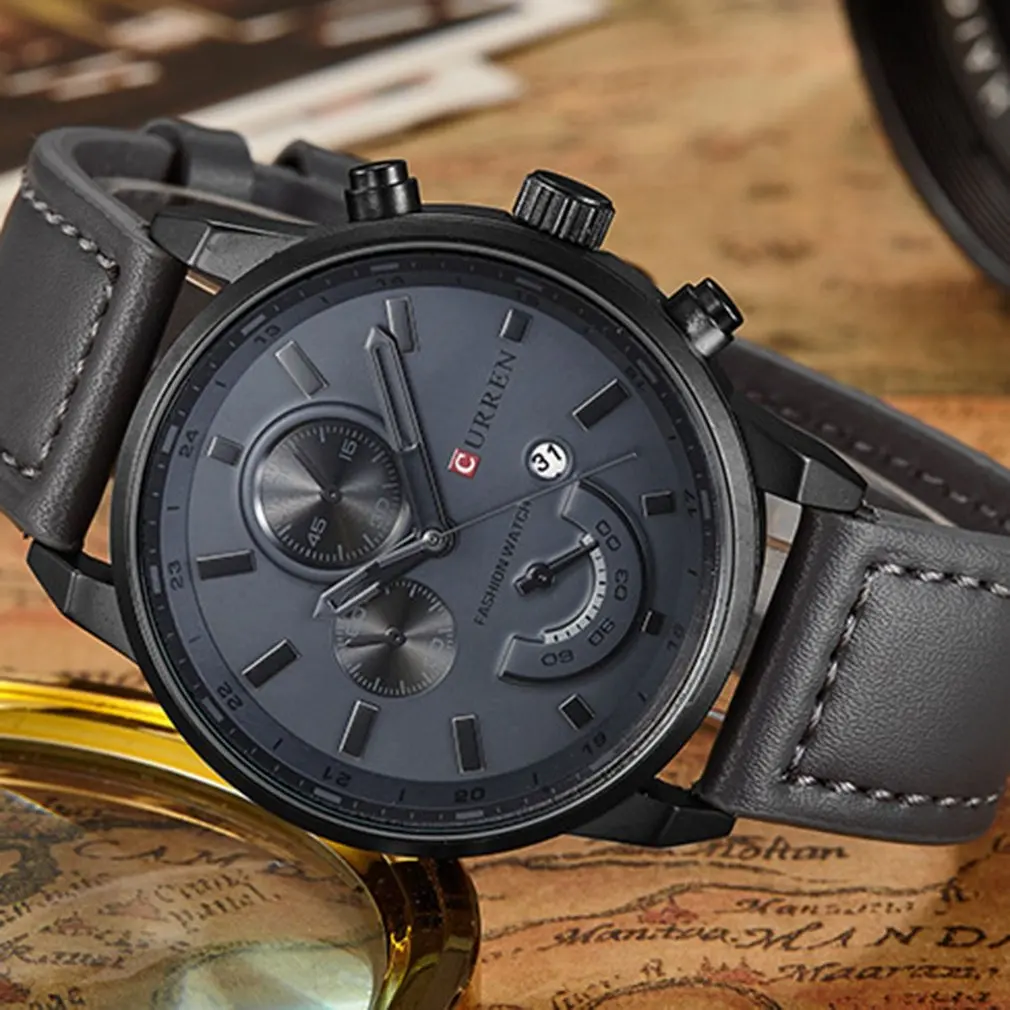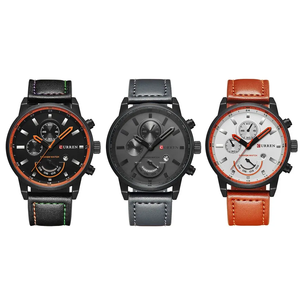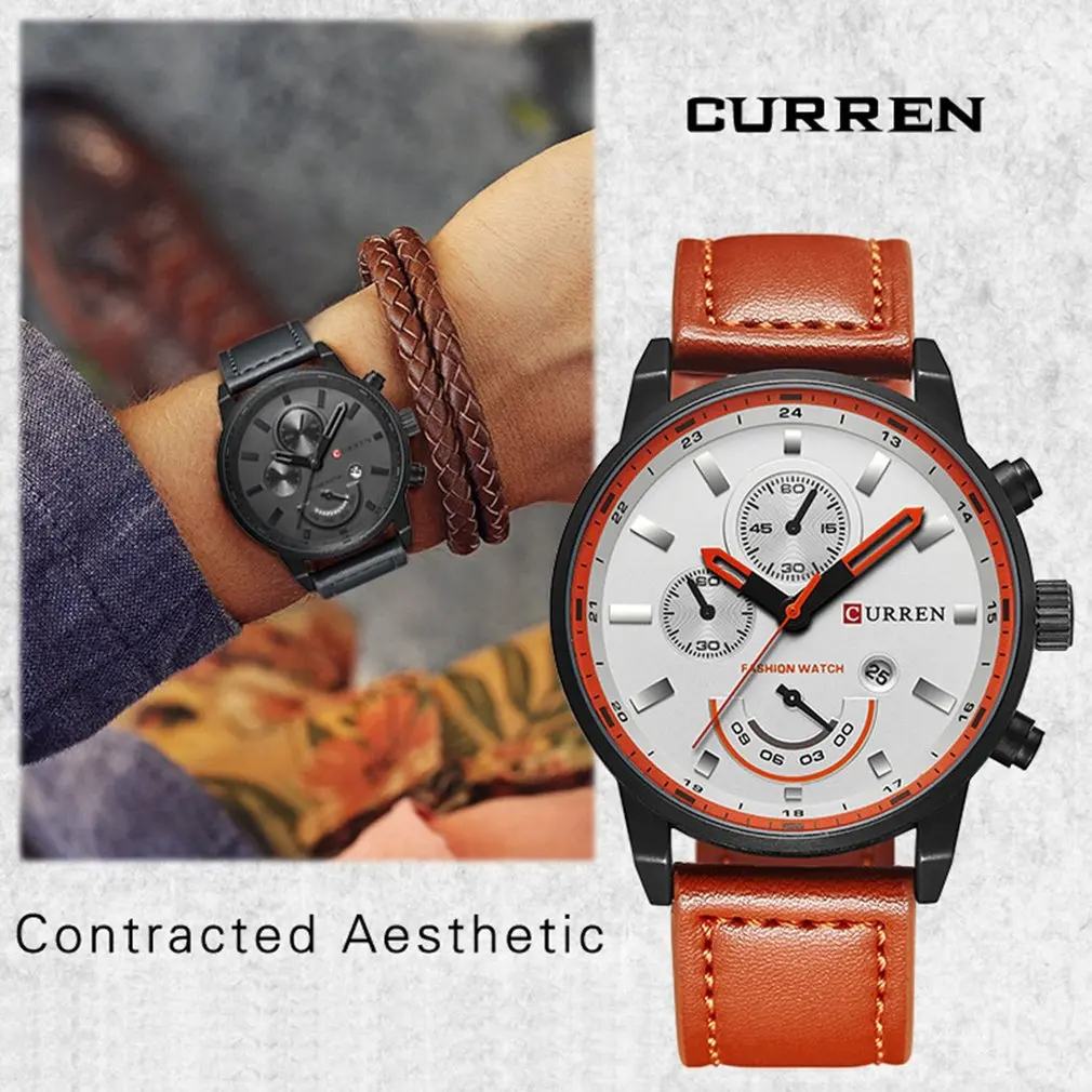 Часы наручные Curren Мужские с большим круглым циферблатом, многофункциональный дизайн, модные кварцевые, в деловом стиле, с календарем, лучший подарок, 8179