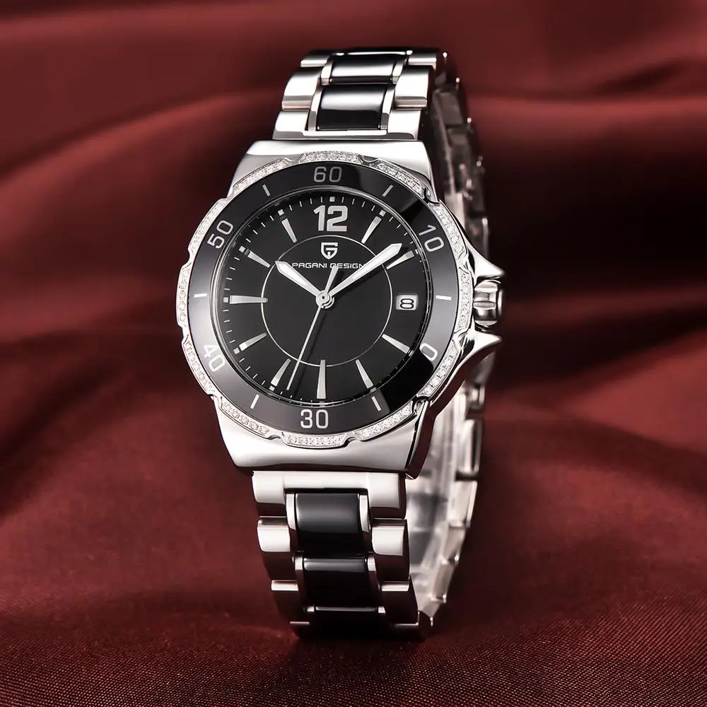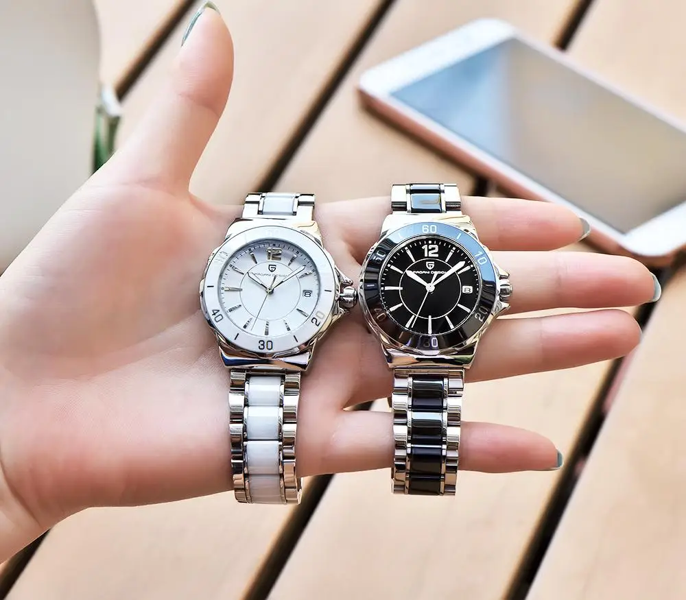 Женские керамические часы, кварцевые водонепроницаемые, с календарем