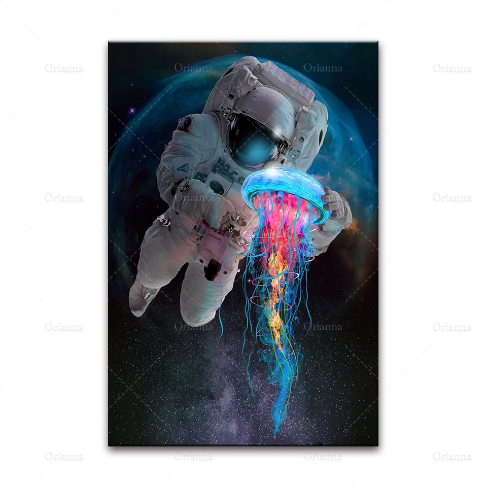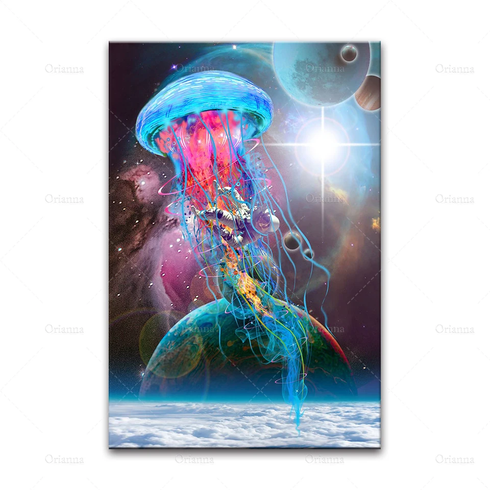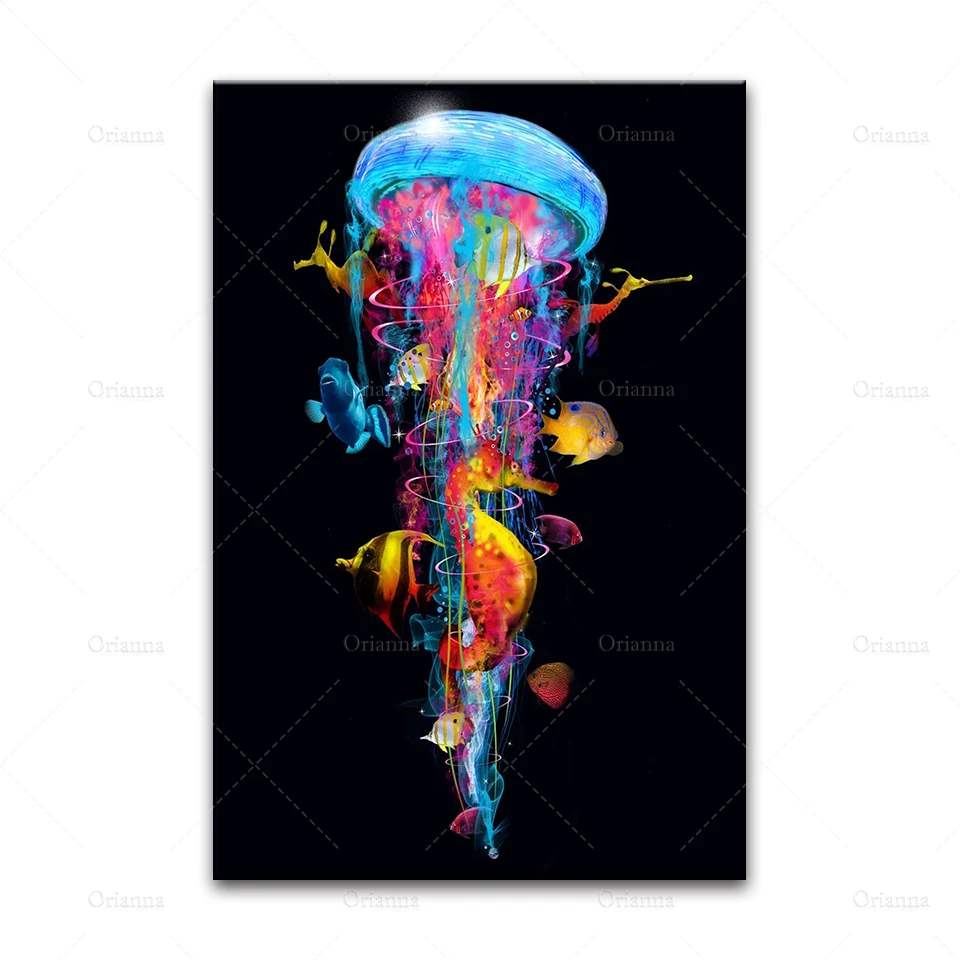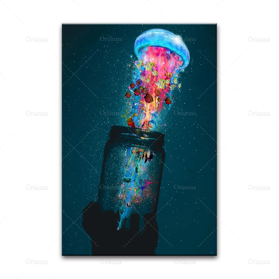 Картина на холсте с абстрактным изображением Медузы в скандинавском стиле, плавающая Медуза принтов, модульные картины, домашний декор