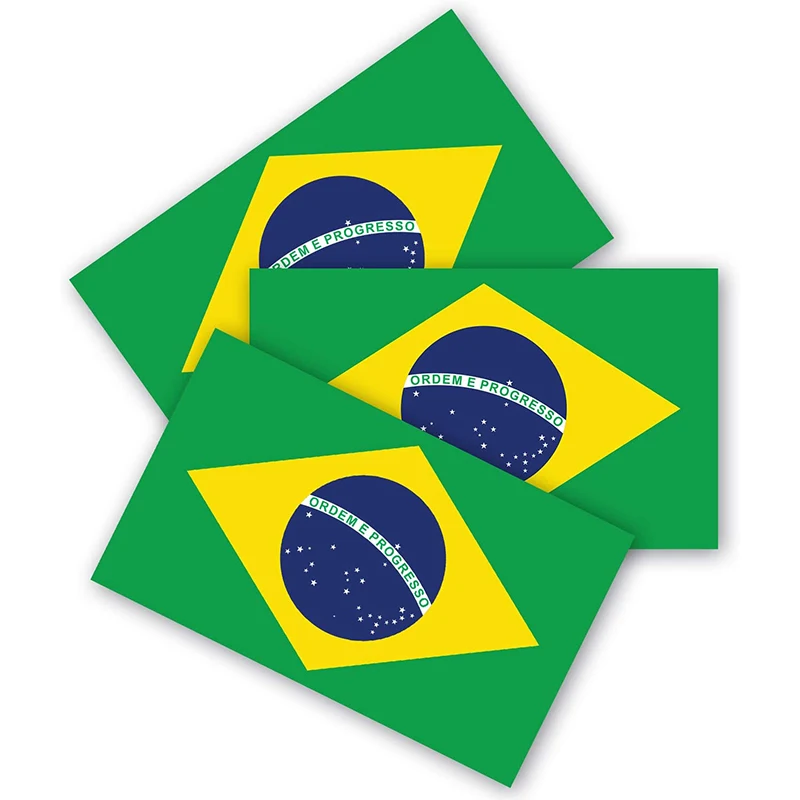 Наклейки-бамперы с бразильским флагом, 3 упаковки, изготовлены из прочных водонепроницаемых материалов, виниловые наклейки на мотошлем, багажник грузовика
