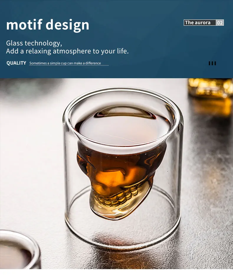 4 шт./компл. двухслойная кофейная кружка с головой черепа для виски, водки, вина, кружка для путешествий, милые рождественские кружки, стакан для молока, оптом