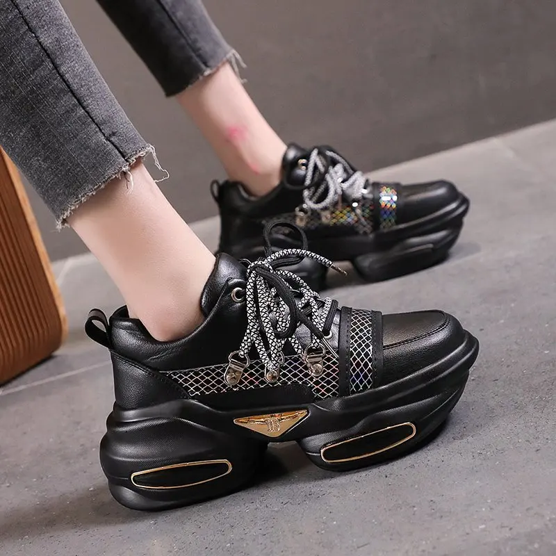 Кроссовки женские на массивной платформе 7 см, роскошные дизайнерские спортивные повседневные туфли, модная обувь для пожилых женщин, весна 2021