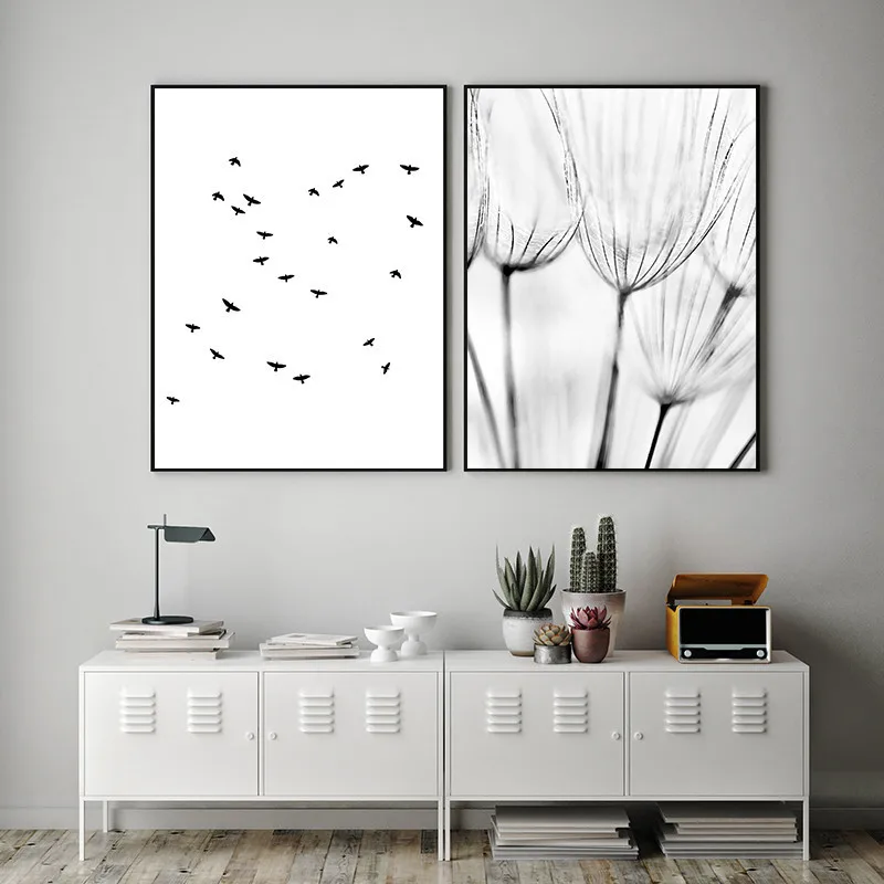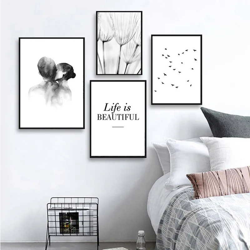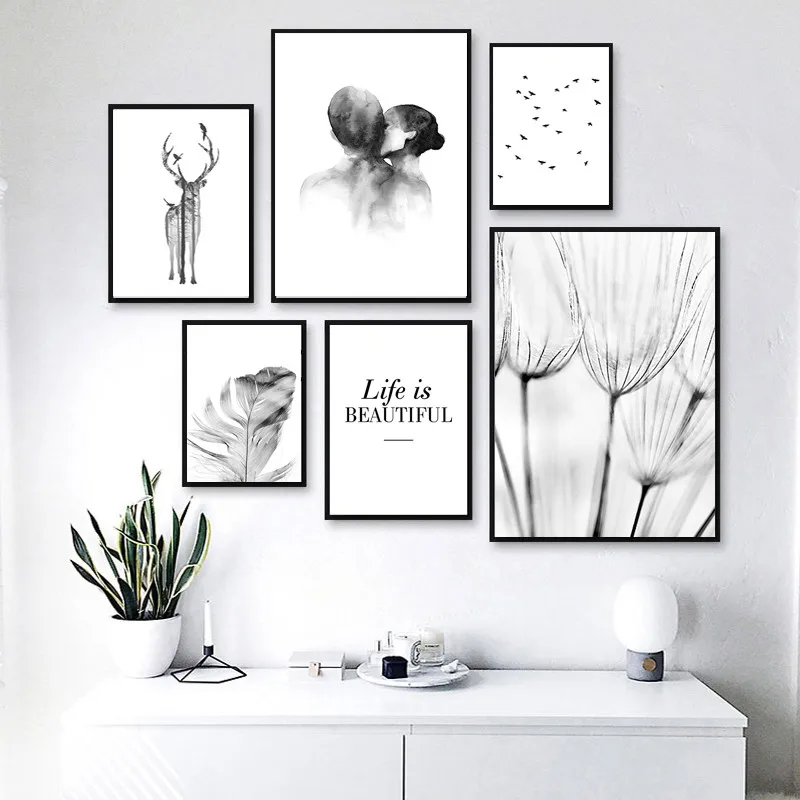 Плакаты с изображением черно-белых одуванчиков, жизнь художественная стена с цитатой, картина с изображением влюбленных, птиц и перьев в скандинавском стиле HD3140