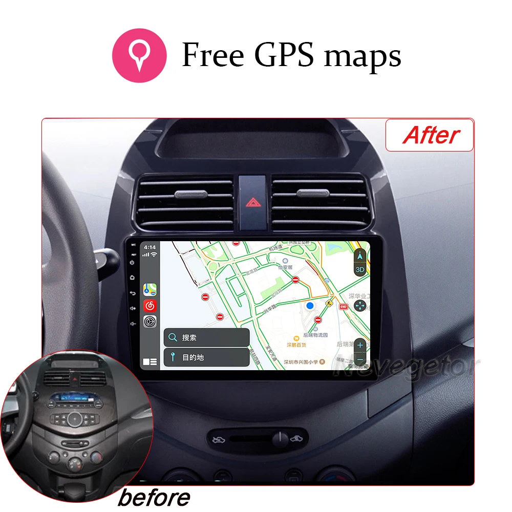Автомобильный мультимедийный плеер 2DIN, 2.5D, Android 11 GO, dvd, GPS, для CHEVROLET Spark Beat M300, 2010, 2011, 2012-2014, с навигацией, радио, BT, Wi-Fi