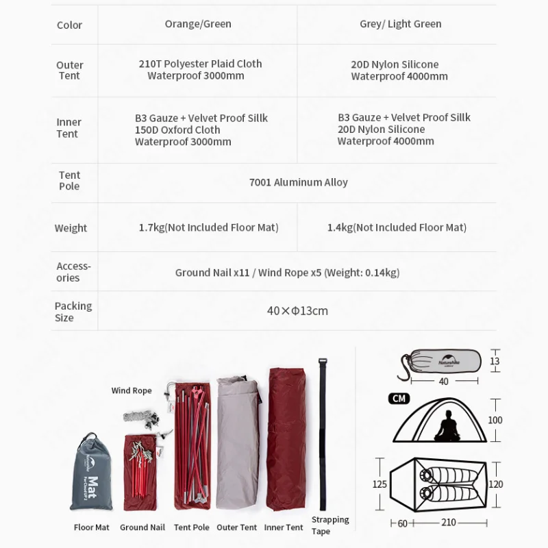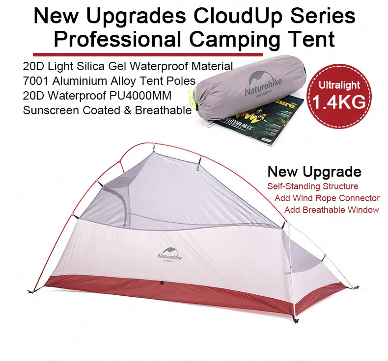 Палатка Naturehike Cloud Up 2 туристическая Ультралегкая, 20D Силиконовая Водонепроницаемая, на 2 человек, с бесплатным ковриком