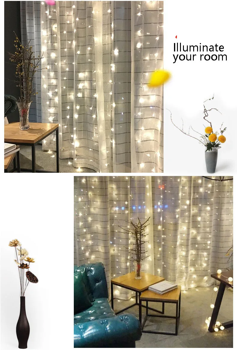 Романтическая светодиодная гирлянсветильник-занавеска, 3 м * 3 м, 300 лампа с европейской вилкой, 8 режимов, для свадьбы, дома, сада вечерние, декор, светильник