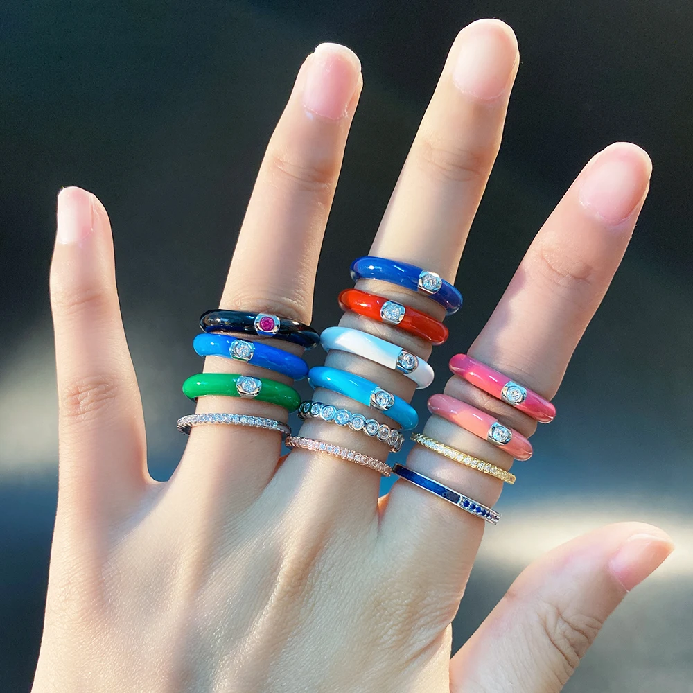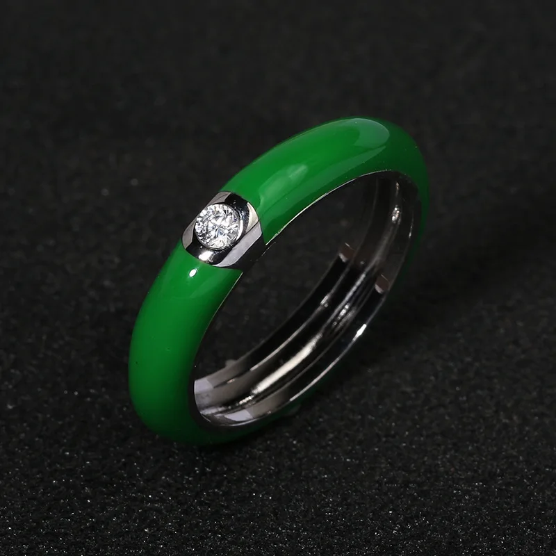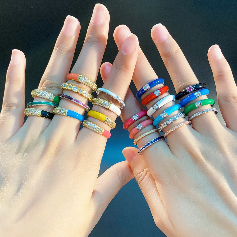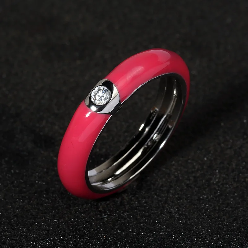 Синее, белое, розовое, простое стильное эмалированное кольцо с кубическим цирконием, Женское кольцо