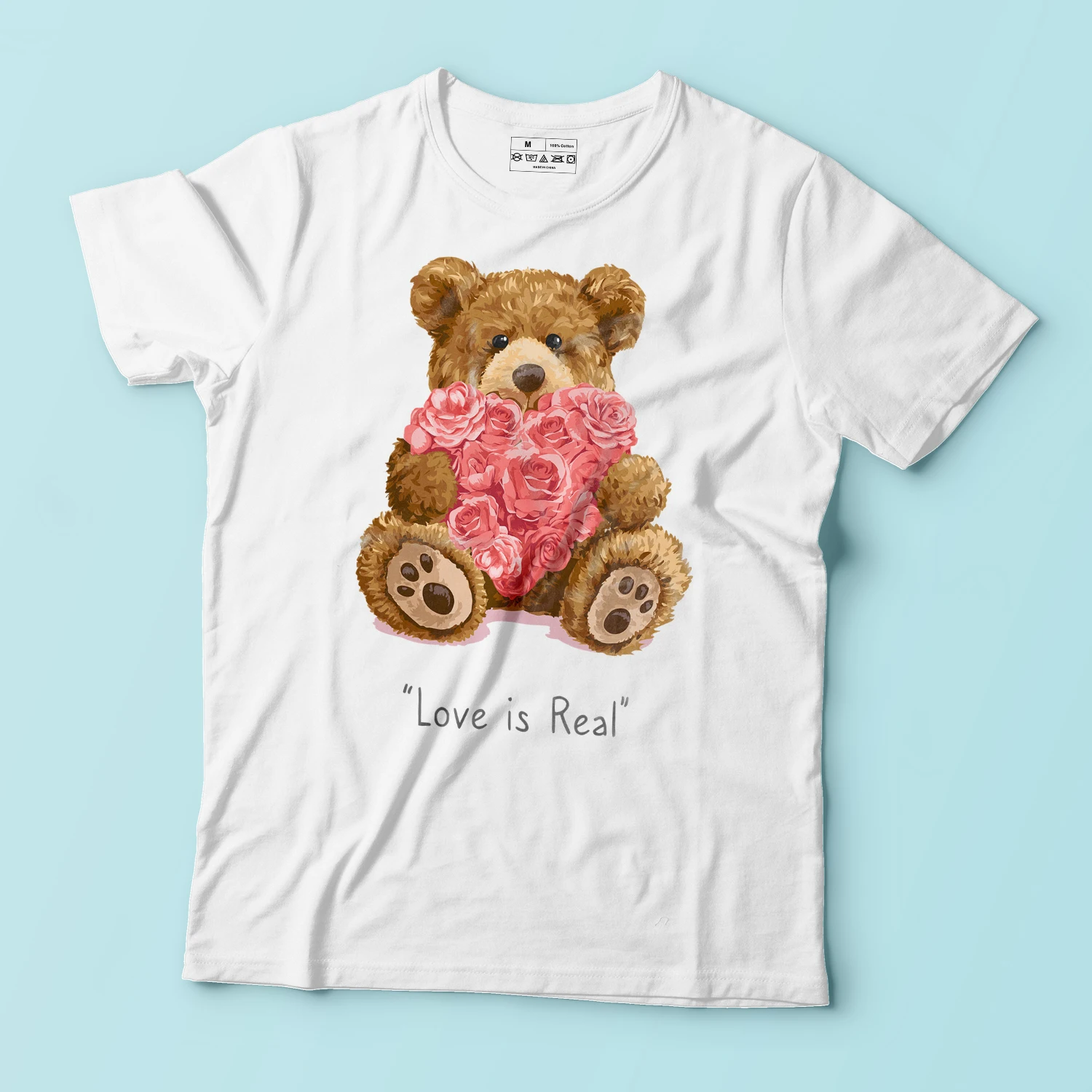 Футболка BLINGPAW с принтом Мишки Тедди Love Is Real, белая хлопковая футболка унисекс, летние футболки на заказ