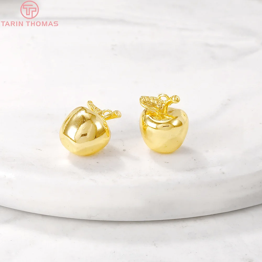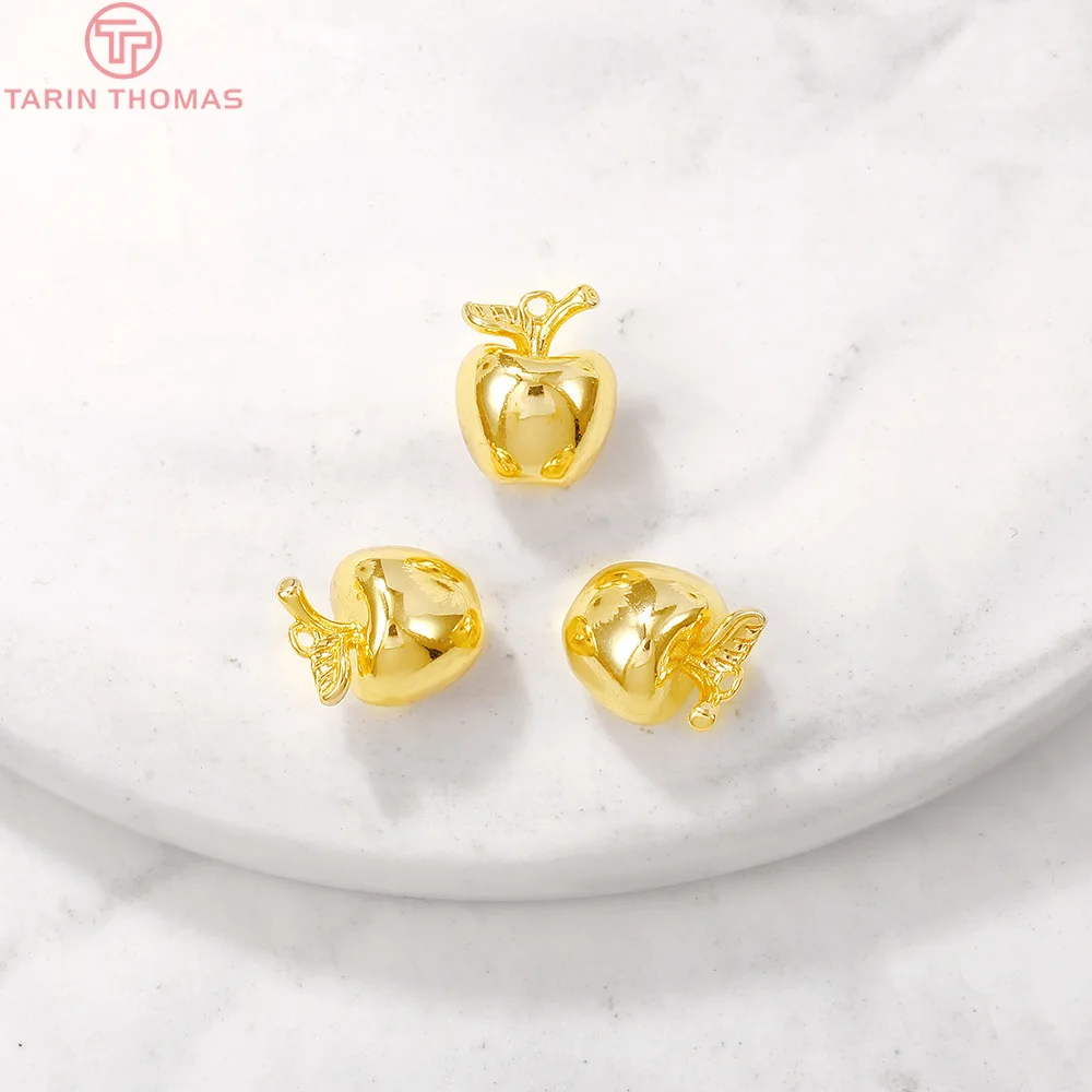Латунные подвески с яблоками, отверстие 1 мм, 24 к золотистого цвета, 6 шт., 8x10 мм, фурнитура для изготовления ювелирных изделий своими руками, аксессуары (1356)