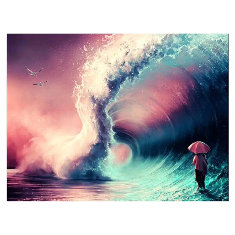 Алмазная 5D мозаика сделай сам, картина квадратной и круглой формы с пейзажами мультфильмов, океанская волна, вышивка крестиком, украшение для дома FC468