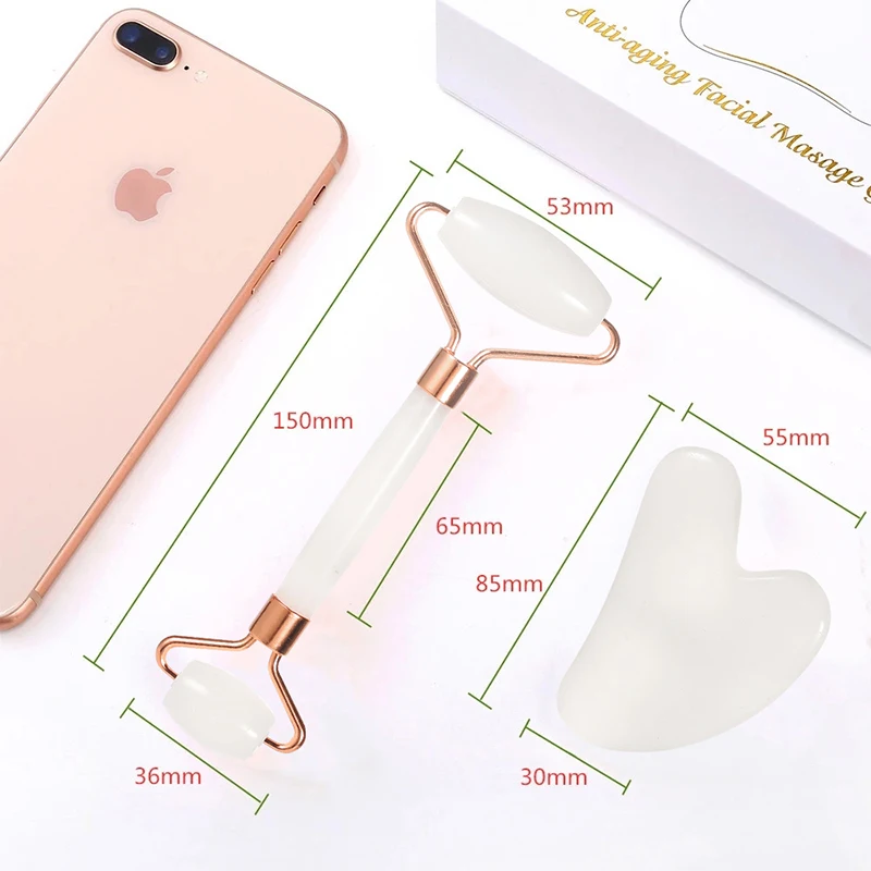 Нефритовый массажер роликовый лицевой, 100% натуральный белый нефрит, массажный ролик для лица, Нефритовая скребковая маска, щетка, набор из трех предметов