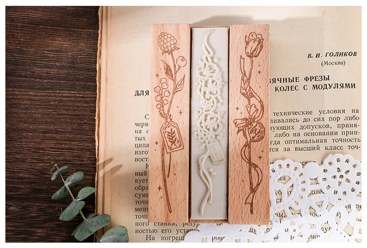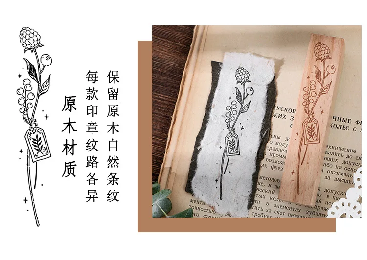 Винтаж деревянные и резиновые штампы природа растения декоративные ...